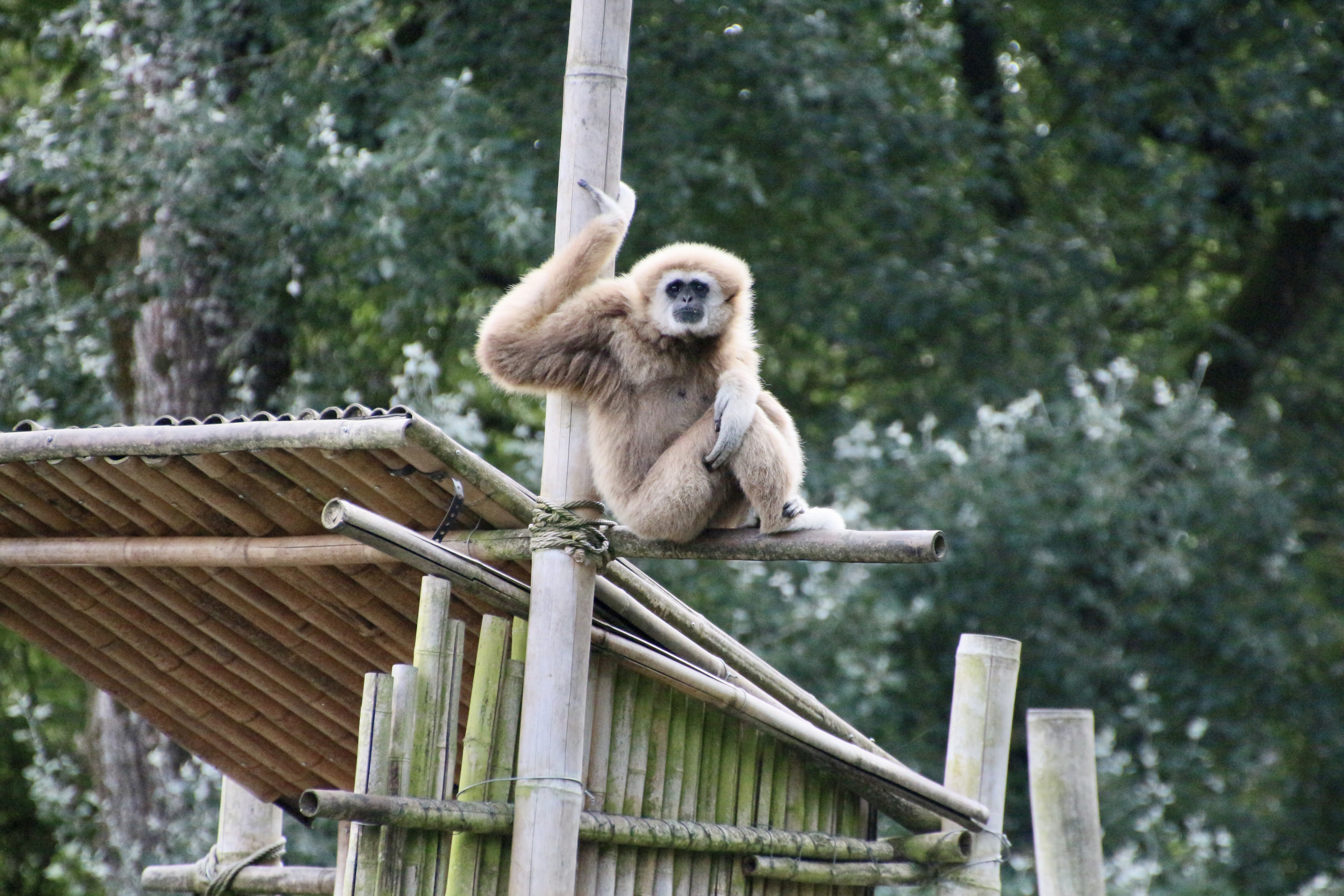Majestätisch, gelangweilter Blick auf‘s Besuchervolk, Weißhandgibbon